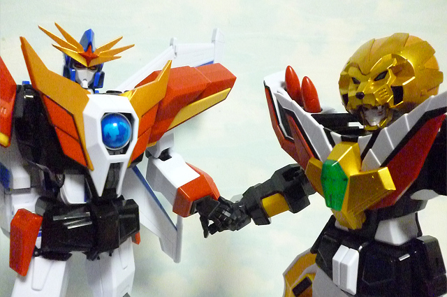 同サイズの主役ロボ2体の浪漫合体!