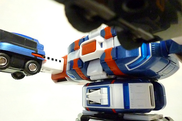 ホバーパイルダーは小さいながらも変形し、本体頭部に合体します。